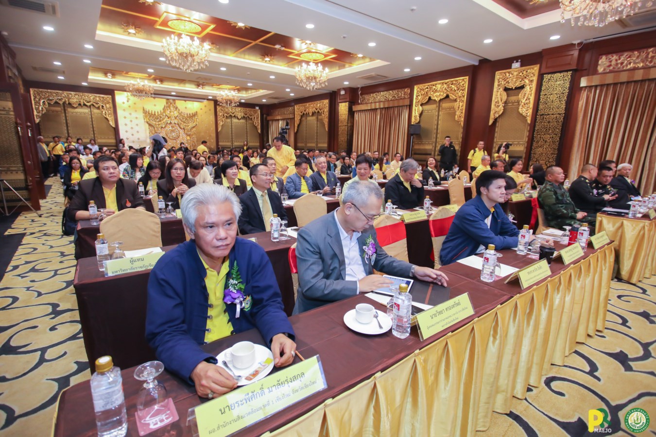 On Saturday, April 20, 2019, Assoc. Prof. Dr. Weerapol Thongma, Acting President of Maejo University together with the administrators participated in the project named “Unite to Fight against Hazardous Dust” organized by Chiang Mai Province, Maejo University, and the Council of University Presidents of Thailand with an honor given from Mr. Khomson Suwanampa, Deputy Governor of Chiang Mai Province who welcomed the participants. Prof. Dr. Samphan Rittidet, Secretary-General of the Office of the Higher Education Commission, presided over the ceremony, and Prof. Dr. Suchatwee, the Chair of the mentioned council gave a special lecture on “The Roles of Educational Institutions and the Northern Haze Crises”. Then facilities to prevent the hazardous dust and supporting money were distributed to various organizations to give to the people, forest fire staff, and disaster victims in Chiang Mai, Chiang Rai, Mae Hong Son, and Phayao to Gen. Jiradej Kamonphet, Deputy Commander of Region 3 who was the representative of the Director of Defense Center to solve forest fires and haze problems in the northern region, and to Assoc. Prof. Dr. Weerapol Thongma, Acting President of Maejo University as the representative of the universities in the North. The ceremony was held at Chiang Saen Meeting Room in Khum Kham International Convention Center. In the event, there were also academic talks, exhibitions, and innovations to solve the haze problems.