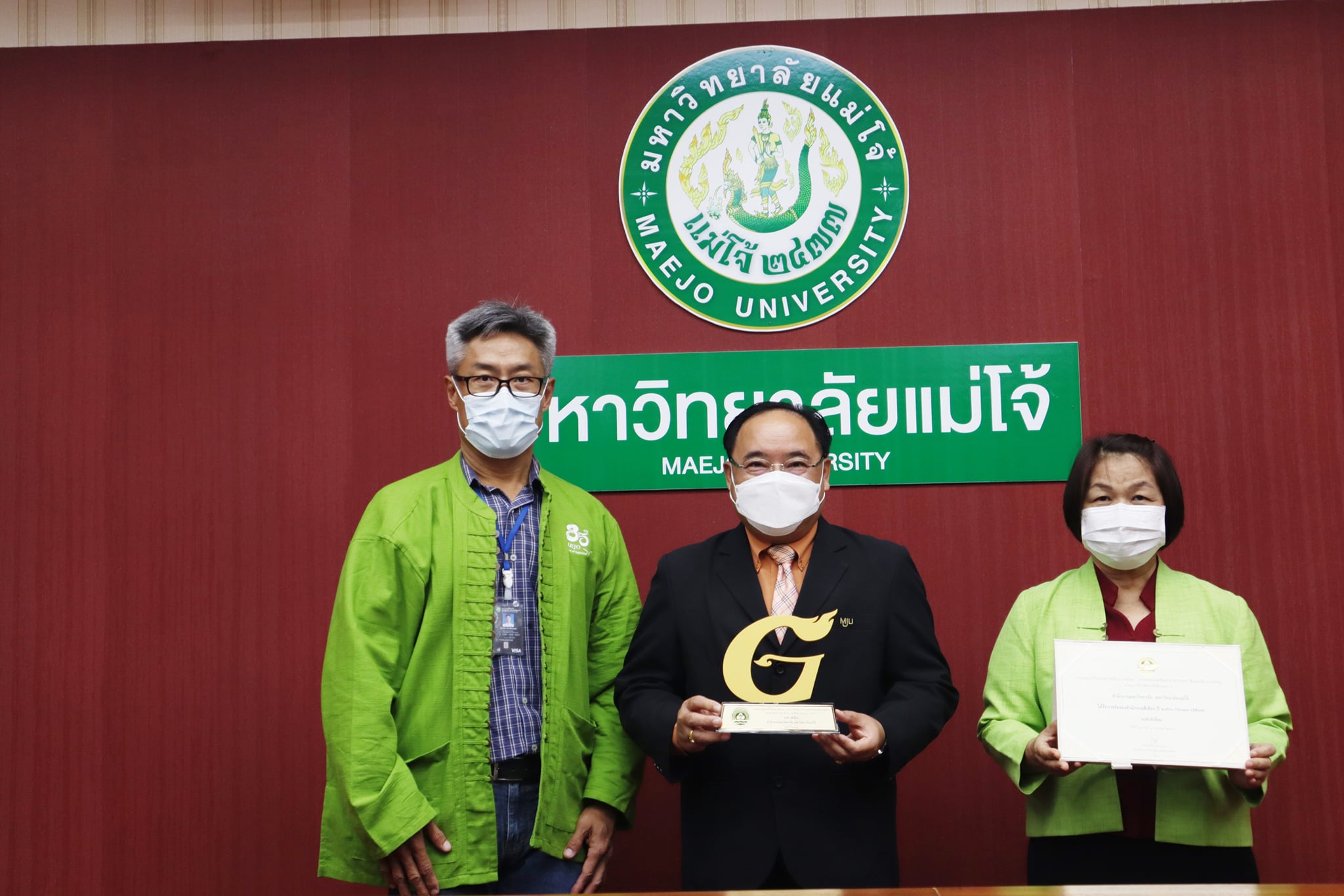 เมื่อวันที่ 29 กรกฎาคม 2564 รองศาสตราจารย์ ดร.วีระพล ทองมา อธิการบดีมหาวิทยาลัยแม่โจ้ พร้อมด้วยผู้ช่วยศาสตราจารย์ ดร.ณัฐวุฒิ ดุษฎี รองอธิการบดีมหาวิทยาลัยแม่โจ้ นางประนอม จันทรังษี ผู้อำนวยการกองกลาง และนายธีระชัย ตันเรืองพร ผู้อำนวยการกองกายภาพและสิ่งแวดล้อม รับมอบโล่รางวัลและเกียรติบัตร สำนักงานสีเขียว ปี 2563 (Green Office) ระดับดีเยี่ยม สำนักงานมหาวิทยาลัย มหาวิทยาลัยแม่โจ้ ณ ห้องประชุมสภามหาวิทยาลัย ซึ่งรางวัลดังกล่าวตรวจประเมินโดยกรมส่งเสริมคุณภาพสิ่งแวดล้อม กระทรวงทรัพยากรธรรมชาติและสิ่งแวดล้อม