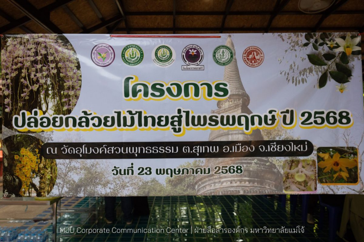 วันศุกร์ที่ 23 พฤษภาคม 2568 มหาวิทยาลัยแม่โจ้ โดย โครงการคืนชีวิตกล้วยไม้ไทยสู่ไพรพฤกษ์อันเนื่องมาจากพระราชดำริ คณะผลิตกรรมการเกษตร ร่วมกับ มูลนิธิกล้วยไม้ไทย จัดโครงการปล่อยกล้วยไม้ไทยสู่ไพรพฤกษ์ ปี 2568 ได้รับเกียรติจาก ดร.วัชระ ตันตรานนท์ ประธานมูลนิธิกล้วยไม้ไทย เป็นประธานในพิธี โดยมี รองศาสตราจารย์ ดร.พุฒิสรรค์ เครือคำ คณบดีคณะผลิตกรรมการเกษตร กรรมการและเลขานุการมูลนิธิกล้วยไม้ไทย กล่าวรายงาน ซึ่งมีผู้แทนจากหน่วยงานภาครัฐ เอกชน รวมถึงเยาวชน และประชาชนในพื้นที่ เข้าร่วมกิจกรรม ณ วัดอุโมงค์สวนพุทธธรรม ต.สุเทพ อ.เมือง จ.เชียงใหม่